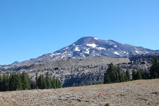 In the meantime, here’s a picture I took of Rock Mesa (foreground) and South Sister (background) taken from the Pacific Crest Trail. Rock Mesa is a ~2,700 year old rhyolite flow that appears to have erupted multiple pumices and has some impressive flow banding of the rhyolite itself. Enjoy!