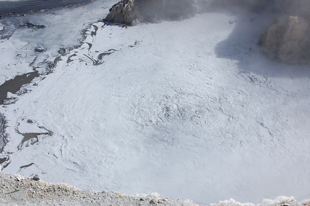 I’m a little behind on the news after spending the weekend field tripping at Lassen Peak. I’ll be catching up soon, but to tide you over, here is a picture I took of some bubbling mudpots/springs at Bumpass Hell near Lassen Peak. The dark areas are pyrite crystals floating on the stew!